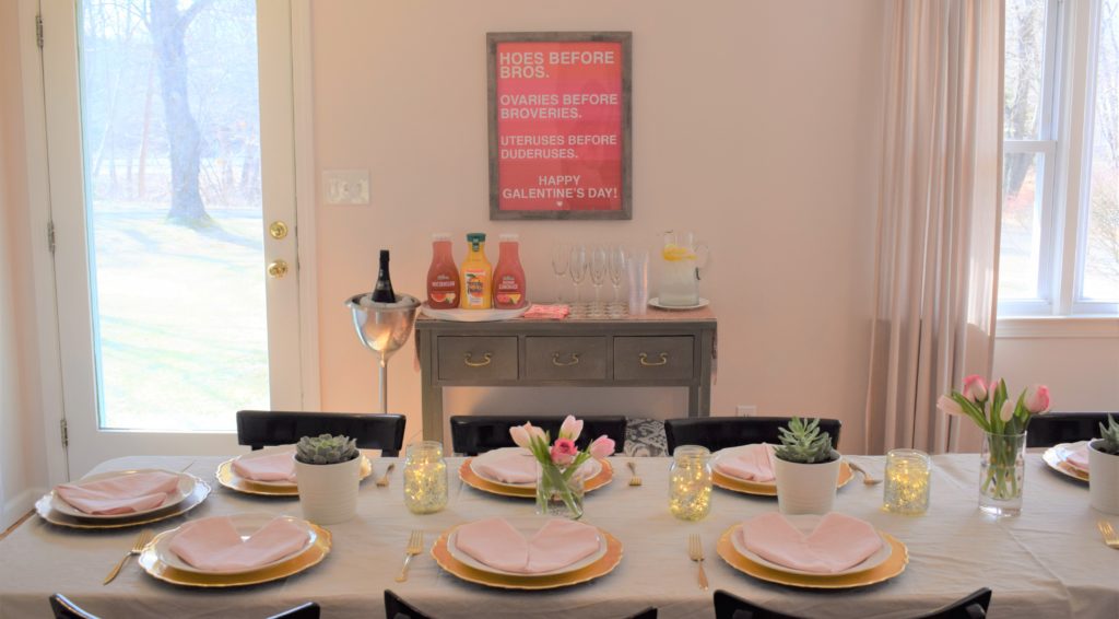 Previously, I posted the decorations from the Galentine’s Day brunch I hosted to celebrate lady friendships. Today I want to share with you the easy make ahead menu to make things a little more stress free. In case you missed it, Galentine’s Day is February 13th according to Leslie Knope from the show Parks and Recs to celebrate the ladies in our lives. We celebrated a little late but there is never a bad time to celebrate friends or have brunch. There is also a great TedTalk on the importance of lady friendships between Jane Fona and Lily Tomlin that is just too funny.