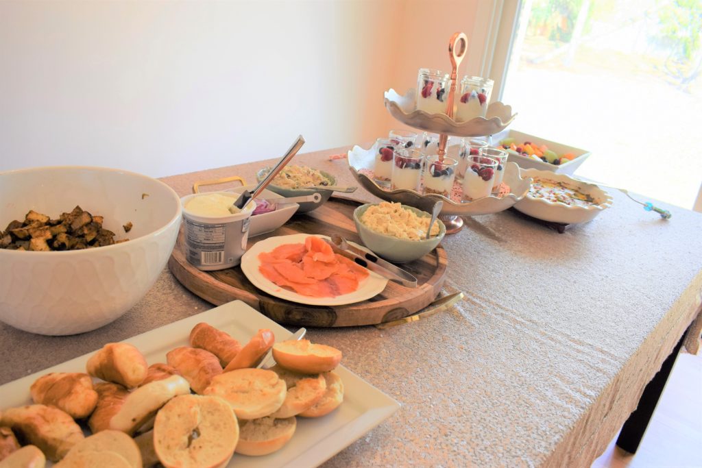 This brunch menu was pretty simple and easy to make in advance so you can enjoy time with your guests. I like to make some items from scratch and buying others to make hosting easy. Here is the brunch menu breakdown: